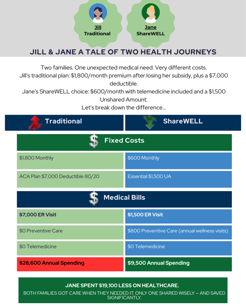 Low monthly costs with sharing for medical bills that exceed the Unshared Amount
